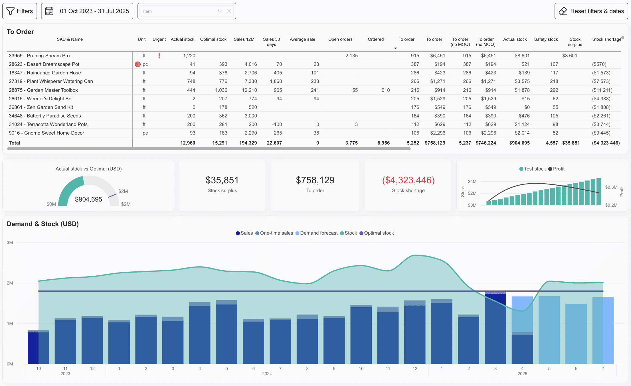 Avoid overstocking while making sure you have enough inventory to meet future demand on time.